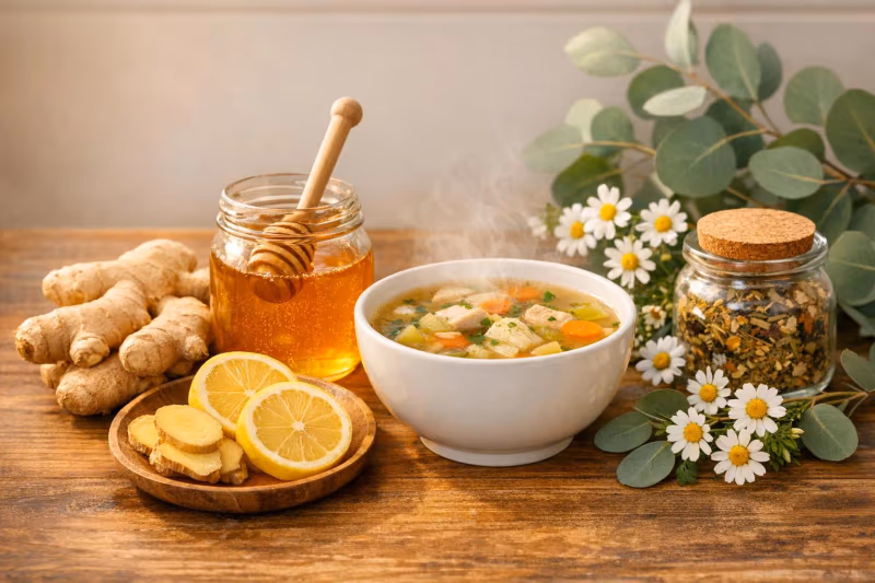 Die hier vorgestellten 8 Hausmittel – Honig, ausreichend Flüssigkeit, Salzwasser, Dampfinhalation, Vitamin C, Ingwer, warme Fußbäder und Hühnersuppe – können Erkältungssymptome auf natürliche Weise lindern. Im Gegensatz zu Medikamenten, die oft nur Symptome überdecken, unterstützen diese Methoden den Körper dabei, sich selbst zu regenerieren. Viele dieser Mittel lassen sich außerdem kombinieren: Zum Beispiel können Sie Honig und Zitrone in einen Ingwertee geben, um gleichzeitig Husten, Halsschmerzen und Übelkeit zu bekämpfen [2].